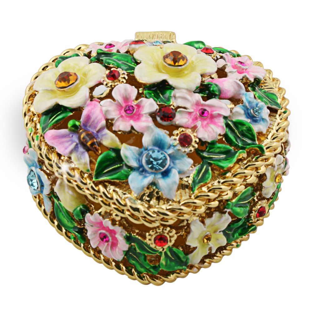 Objet d'art 'Lovely Garden' Heart Shaped Flower Box Trinket Box
